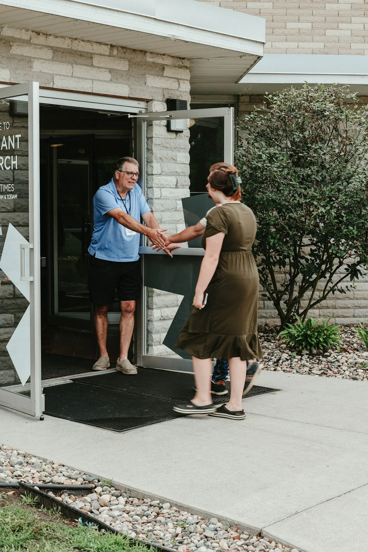 Parking is located on the south side of the building and you’ll see our greeters waiting for you at the double doors. As you enter, our main worship area will be directly ahead and our Kid’s Ministry and common area will be to the left. In our common area, you’ll find our guest services booth, refreshments, and restrooms.